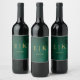 Emerald Green & Gold Monogram Wedding Wine Label | Personalized Elegant Luxe Initial Bottle Sticker