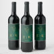 Emerald Green & Gold Monogram Wildblume Wedding Weinetikett