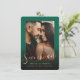 Dark Emerald Green Gold Script & Marble Foto Overlay Save the Date Cards sind elegant und soo chic, mit dunklen verblassenden ombre Gradientenüberlagerungen, um Ihren Text zu markieren, und Golden Handwriting Script Schriftart. Personalisieren Sie es mit Ihrem Foto. In Imitaten Goldfolie-Schrift dargestellt. - Hochzeit Speichern Sie das Datum benutzerdefinierte Fotokarten! ~ Karo mein Shop zu sehen, die gesamte Suite für dieses Design!