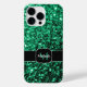 Personalisieren Sie Imitate funkelnd mädchenhafte iPhone Gehäuse mit Ihrem Initial und Namen. Schöne mädchenhafte Smaragd grün glänzende Glitzer Imitate Glitzern. Ausgeklügelter, schimmernder, lebendiger, üppiger, reicher, lebendiger Glamour, smaragdgrün. Wir verwenden Foto von grünen Glitzern Glitzer!