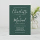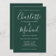 Diese elegante Hochzeitseinladung mit ihren charakteristischen Stilnamen kann mit Ihren Informationen in schick weißer Schrift auf smaragdgrünem Hintergrund personalisiert werden. Sie können die Hintergrundfarbe an Ihr Hochzeitstil anpassen. Entwickelt von Thisisnotme©