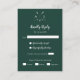 Smaragdgrün moderner minimalistischer Golf Hochzeit RSVP Gehäuse Karte. Für ein einheitliches Aussehen, *** Siehe Matching Items: https://www.zazzle.com/collections/emerald_green_golf_wedding-119601555915594349*** PERSONALISIEREN SIE DIESEN PUNKT (1) Für weitere Anpassungen klicken Sie bitte auf den Link "Weiter anpassen" und verwenden Sie unser Design-Tool, um diese Vorlage zu ändern. Sie können auch die Hintergrundfarbe ändern! (2) Kontaktieren Sie mich, wenn Sie passende Artikel wünschen, die in meinem Shop nicht erhältlich sind.