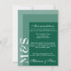 Einfache moderne, schicke Hochzeitszeitszitkarte für Unterkünfte, Bräute, die ihre Zeremonien in einem modernen Stil und smaragdgrün schmücken. Die schicke Hochzeitssuite verfügt über einen modernen, weißen Schriftart mit Monogramm-Initialen.
