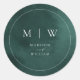 Emerald Green Monogram & Border Elegant Wedding Classic Round Sticker