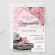 Emerald Green Pink Rose Lowrider Chola Quinceanera Einladung