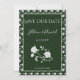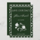 Persönliche Hochzeitsankündigung mit einer Smaragdgrünen Rose Save the Date. Das Design der Ankündigung umfasst weiße Rosen und passenden gekachelten Hintergrund und Text, den Sie mit Ihren Hochzeitstermin-Details personalisieren können. Zusätzliche Ankündigung Datum freihalten für dieses Design in verschiedenen Farben verfügbar.