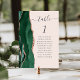 Der links Rand dieser eleganten modernen Hochzeitskarte mit einer smaragdgrünen Aquarellrahmen in Aquarellfarbe, die mit Imitaten Rose Gold Glitzer bestickt ist. Das Wort "Tabelle" erscheint in der handgeschriebenen Schrift "Holzkohle" auf einem rot-rosa Hintergrund. Fügen Sie die Namen Ihrer Gäste hinzu, die jeder Tabelle zugeordnet sind.