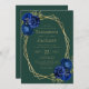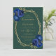 Emerald Green Royal Blue Floral Gold Wedding Einladung