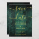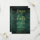 Diese elegante smaragdgrüne rustikale Stallholz boho Hochzeit rett-the-date Karte kann mit Ihren Informationen in schicken goldenen Typografie personalisiert werden. Entwickelt von Thisisnotme©