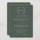 Emerald Green Rustic Leaf Simple Monogram Wedding Einladung