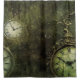 Umgestalten Sie Ihr Bad in ein Dampfbad mit diesem Duschvorhang mit einer alten Uhr in einer rustikalen smaragdgrünen Kulisse. Es ist ein Nicken an die Eleganz einer vergangenen Zeit. Bestelle noch heute!