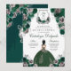 Emerald Green & Silver Floral Elegante Quinceañera Einladung