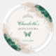 Dieser schicke und hübsche Quinceañera-Aufkleber besticht durch hübsche smaragdgrüne Blume, eine funkelnd silberne Tiara, einen zauberhaften Schmetterling und tropische Boho-Elemente. Klicken Sie auf die Schaltfläche "Weitere Anpassung", wenn Sie den Stil und die Position des Textes neu ordnen und formatieren möchten.