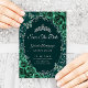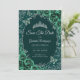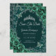 Smaragdgrün und silberne Quinceanera Feier Save the Date Karte. Features, Skript-Schriftart, Schmetterlinge, Aquarell-Rose und Tiara. Ideal für eine elegante Glasfeier im Prinzessinnstil. Personalisieren Sie Ihre persönlichen Daten. Gedruckte Zazzle-Einladungen oder Sofortdownload digitaler Druckvorlage.