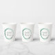 Mit diesen weißen Papiertassen, die eine trendige, smaragdgrüne Farbe, ein schlichtes Krautdesign mit den Namen der Braut und des Bräutigams in grauem, stilisiertem Schriftzeichen auf einer Tasse aufweisen, verleihen Sie Ihrem Polterabend Eleganz. Bearbeiten und ersetzen Sie Initialen mit Ihren eigenen.
