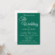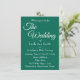 Einfaches Design, Einladung zur Hochzeit, mit einem trendigen, smaragdgrünen Hintergrund, zusammen mit den zukünftigen Braut- und Bräutigamen und Veranstaltungsdatum, Uhrzeit, Ort und Registrierung in weißem, stilisiertem Schrift gedruckt. Personalisieren Sie Ihre Hochzeitseinladung, indem Sie Informationen durch Ihre eigenen ersetzen. Wählen Sie Ihre Einladung Papier Stil und Quantität. Entworfen, um sich mit unserer Emerald Green Simple Style Wedding Kollektion abzustimmen.