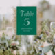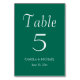 Begleiten Sie Ihre Hochzeitsgäste mit dieser schlichten Tischnummer-Karte, die auf einem trendigen, smaragdgrünen Hintergrund mit weißen, stilisierten Schriftzeichen versehen ist. Design ist auf jeder Seite der Karte. Bearbeiten Sie Ihre Karte, um die Tischnummer, die Namen und das Datum des Ehepaares zu ändern. Bestellen Sie Karten für jede Tischnummer separat.
