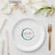Fügen Sie Ihrem Hochzeitsfest Eleganz mit diesen hübschen Tellern hinzu, die ein einfaches, smaragdgrünes Krautdesign sowie die Initialen von Braut und Bräutigam und das Hochzeitsdatum in stilisierten Schriften aufweisen. Bearbeiten und ersetzen Sie die Initialen und das Datum mit Ihrem eigenen. Wählen Sie Ihre Papierplatte Stil und Größe.
