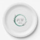 Emerald Green Simple Wreath Monogram Wedding Pappteller