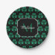 Emerald Green Sparkle Kleeblatt Black Monogram Pappteller