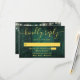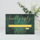 Eine smaragdgrüne Saite beleuchtet rustikale Holzbühnenkarte RSVP mit Ihren Details Set in moderner Goldtypografie. Entwickelt von Thisisnotme©