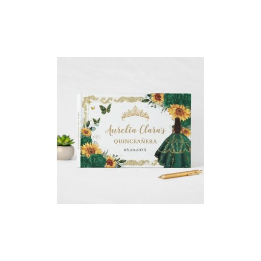 Emerald Green Sunblumen Blütengolden Quinceañera Save The Date