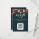 Die "Emerald Green and Red Tulip Wedding RSVP Card" lädt die Gäste elegant ein, ihre Anwesenheit zu bestätigen. Die Vorderseite der Karte ist mit einem geschmackvollen Tulpenrandbild-Set geschmückt, das sich durch einen grünen smaragdgrünen Hintergrund, eine wunderschöne Kalligraphie und einen klassischen Serifen-Schriftart auszeichnet. Dieses Design verbindet moderne Eleganz mit zeitloser Eleganz. Hinter einem Motiv aus rot-cremefarbenem Tulpenmotiv im smaragdgrünen Hintergrund verbirgt sich eine bemerkenswerte, koordinierte Touch. Diese RSVP-Karte ist die perfekte Möglichkeit, das Blumenmotiv Ihrer Hochzeit mit einem schicken, zeitgenössischen Stil zu verbinden, um sicherzustellen, dass Ihre Gäste sich von Anfang an als Teil Ihres besonderen Tages fühlen. Das Design der Karte spiegelt das gleiche raffinierte botanische Thema wie Ihre Einladungen wider und schafft so einen einheitlichen Look über Ihre Hochzeitsarbeit. Die Verwendung von Premium-Cardstock verleiht jeder RSVP-Karte ein substanzielles, hochwertiges Gefühl, das die Bedeutung des Ereignisses signalisiert. Diese RSVP-Karte ist mit einem QR-Code für Gäste konzipiert, um deren Anwesenheit anzuzeigen. Sie ist nicht nur ein schönes Kunstwerk, sondern auch ein funktionales Element Ihrer Hochzeitsplanung. Es ist eine exquisite Möglichkeit für Ihre Gäste, ihre Teilnahme an Ihrem Tag der Liebe und Feier zu bestätigen.