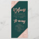 Dieses elegante smaragdgrün und Rose Gold Glitzer Hochzeitsvorlage fügt eine Touch von Glamour und Raffinesse zu Ihrer Zeremonie hinzu. Eine Seite ist mit moderner Kalligraphie und sauberer Typografie gestaltet und bietet Ihnen eine vollständige Zeremonie, während auf der Rückseite Ihre Mitglieder der Hochzeitsfeier aufgeführt sind. Ideal für feierliche, klassische oder minimale Hochzeiten. Dieses vertikale Layout ist vollständig editierbar, um Ihren Ereignisdetails zu entsprechen. Ideal für Herbst-, Winter- oder Abend-Hochzeiten mit einer reichen und schicken Farbpalette. Hinweis: Glitzer ist ein Druckeffekt - kein wirklicher Glitzer oder Folie.