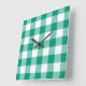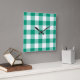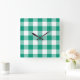 Stilvolle Wanduhr mit smaragdgrünen und weißen Karos Gingham Muster Design. Erhältlich in quadratischer und runder Form. Matching-Wohngestaltung verfügbar.