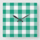 Emerald Green und White Karos Gingham Pattern Quadratische Wanduhr