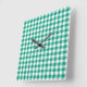 Eine stilvolle Wanduhr mit einem typisch smaragdgrünen und weißen Karo Gingham-Muster. Erhältlich in quadratischer und runder Form.