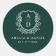 Emerald Green Wappen Moderne Monogram Wedding Runder Aufkleber