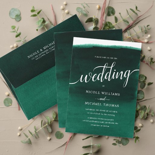 Emerald Green Watercolor Wedding RSVP Karte