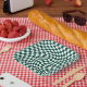 Moderne böhmische dunkle Emerald Green Farbe Thema Hochzeitsfeier Produkte. Evergreen Retro trendige Karos Design, verschleierte Schachbrettmuster Teller in eleganten und schicken dunklen Emerald Green und Weiß Farbe.