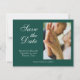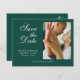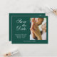 Mit diesem eleganten Save the Date mit einem smaragdgrünen Hintergrund verkünden Sie Ihren großen Tag. Die Vorderseite bietet einen besonderen Platz für Ihr Lieblings-Foto und fügt dem formalen Design eine persönliche Touch hinzu. Auf der Rückseite werden Ihre Initialen elegant dargestellt, und das raffinierte Aussehen wird miteinander verbunden. Ideal, um den Ton für eine klassische und unvergessliche Hochzeitsfeier zu setzen.