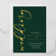 Ein elegantes und minimalistisches Design, das alles in einem Einladungs-Programm für Hochzeiten mit einem stilvollen Script-Schriftart in Goldfolie vereint. Passen Sie Ihre Daten an, um Ihre Gäste über Ihren besonderen Tag zu informieren. Bitte stöbern Sie in der Minimal Emerald Green Gold Wedding Suite für passende Artikel.