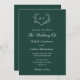 Unsere elegante smaragdgrüne Hochzeitseinladung beinhaltet einen botanischen Kranz, der die Monogramm-Initialen der Braut und des Bräutigams umschließt. Diese elegante Hochzeitseinladung kann mit Ihren Informationen in einem schönen weißen Kalligraphieskript auf einem smaragdgrünen Hintergrund personalisiert werden.