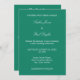 Mit stilvollen Schriftart und einem traditionellen Layout auf smaragdgrünem Hintergrund ist dies eine hübsche Hochzeitseinladung mit einer modernen Drehung - die Rückseite enthält einen QR-Code, der es einem Gast leicht macht, mit seinem Telefon zu scannen, um Ihre Hochzeitswebsite zu besuchen. Die Einladung hat Platz auf der Rückseite für Informationen wie Empfang-Details, Unterkunftsdetails und auch ein Hinweis, der den Gast einlädt, Ihre Website für noch mehr Informationen zu besuchen oder online zu antworten. Alle Formulierungen lassen sich einfach mit der Online-Personalisierungsvorlage personalisieren, bevor Sie bestellen. Wenn Sie alle Formulierungen personalisiert haben, sollten Sie fortgeschrittene Anpassungen vornehmen, wie z.B. das Layout verändern, dann blättern Sie bitte zum "Bearbeiten mit dem Design-Tool"-Button, um "weiter anpassen".