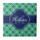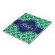 Smaragdgrün und weiß marokkanisches Gittermuster mit einem Monogramm Marine. Auf dem grünen und weißen Trellis-Muster befindet sich ein marineblau-weißes Etikett mit einem Monogramm Buchstaben und Namensvorlage, die Sie anpassen können.