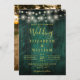 Emerald Green Wood String Lights Foto Wedding Einladung