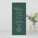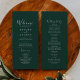 Dieses smaragdgrüne koordinierte Hochzeitsprogramm ist perfekt für eine Hochzeit. Das elegante und dennoch rustikale Design besticht durch ein stimmungsvolles dunkles Grün und ein modernes böhmisches Waldambiente. Koordiniert mit der Emerald Greenery Collection von Fresh & Yummy Paperie. Geben Sie die Namen des Paares, das Datum und den Ort der Hochzeit, Dankeschön-Nachricht, Dienstorden, Hochzeitsfeier und ein optionales "in Loving Memory"-Denkmal ein.