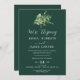 Feiern Sie Ihre Liebe mit dieser eleganten, grün anmutenden Hochzeitsempfehlung. Dieses Design verbindet den rustikalen Charme mit einem modernen böhmischen Waldgefühl und besticht durch stimmungsvolle, dunkelgrüne Blätter und Eukalyptus. RSVP-Karten sind separat erhältlich, oder Sie können UAWG auf der Kartenrückseite einbinden.