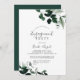 Diese smaragdgrüne Begrüßungsparty lädt zu einer boho Verlobung Veranstaltung ein. Das elegante und dennoch rustikale Design besticht durch stimmungsvolle, dunkelgrüne Blätter und Eukalyptus mit einem modernen böhmischen Waldgefühl.