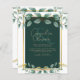 Stellen Sie mit unserem neuen smaragdgrünen, Eukalyptus-Blätter und goldene Hochzeitseinladungen eine Touch von Eleganz und Stil für Ihren besonderen Tag ein. Diese Einladungen sind mit einer wunderschönen modernen Typografie und einem atemberaubenden botanischen, goldenen Farbschema ausgestattet, das sich perfekt für einen klassischen und raffinierten und naturlich inspirierten Look eignet. Unsere Kollektion bietet eine Vielzahl von Layouts, aus denen Sie wählen können, das perfekte Design, das zu Ihrem Hochzeitsthema passt. Sie können sogar einen einzigartigen QR-Scan-Code hinzufügen, um Ihren Gästen die UAWG und Bestätigung ihrer Anwesenheit zu erleichtern. Auf der Rückseite der Einladungen finden Sie alle notwendigen Informationen für Ihre Gäste, einschließlich der UAWG. Wir bieten sowohl günstige als auch Premium-Papierkarten-Optionen, sodass Sie die beste Option wählen können, die Ihren Bedürfnissen und Ihrem Budget entspricht. Unsere Premium-Karten werden auf hochwertigem Papier gedruckt und verleihen ein luxuriöses Aussehen. Schauen Sie sich unsere gesamte Kollektion an und finden Sie die perfekte Einladung für Ihre smaragdgrüne und goldene Hochzeit. Diese Einladungen werden bestimmt Ihre Gäste beeindrucken und den Ton für Ihren großen Tag Set. Spanische Boda, speichern Sie die Daten, Nikah Einladungen sind auch in dieser Sammlung verfügbar.