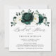 Elegante Smaragdgrüne Grünpflanzen & Elfenbeinblütendusche Botanische Brautdusche Einladung mit weißen Rosen und eleganten grünen Aquarellfarben Eukalyptus-Blätter . Bitte kontaktieren Sie mich für Hilfe bei der Anpassung oder wenn Sie ein anderes Produkt mit diesem Design benötigen.