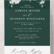 Elegante Smaragdgrüne Vegetation & Elfenbeinblütenhochzeit mit botanischer Blüte - alles in einer Einladung mit weißen Rosen und eleganten grünen Eukalyptus-Blätter . Bitte kontaktieren Sie mich für Hilfe bei der Anpassung oder wenn Sie ein anderes Produkt mit diesem Design benötigen.