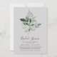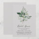 Diese smaragdgrüne, graue Brautdusche lädt zu einem boho Polterabend ein. Das elegante und dennoch rustikale Design besticht durch stimmungsvolle, dunkelgrüne Blätter und Eukalyptus mit einem modernen böhmischen Waldgefühl.