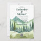 Das wunderschöne Watercolor Mountain Forest Wedding Design ist ideal für Paare, die ihren besonderen Tag inmitten der Natur gewollt haben. Dieses malerische Design spiegelt das Wesen einer Hochzeit in Urlaubsort in den Bergen wider, mit einer wunderschönen Aquarelllandschaft als Kulisse. Die tiefgrüne Waldfarbe und die smaragdgrüne Farbe verleihen dem Hotel ein natürliches, rustikales Ambiente, das sich perfekt für eine Landhochzeit im Hinterwald oder ein Natur-Camping-Abenteuer eignet. Im Hintergrund thronende Pinienbäume und dieses Design wird Sie und Ihre Gäste in eine ruhige Waldlandschaft führen.