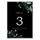 Diese smaragdgrüne schwarze Tischnummer ist perfekt für eine Hochzeit. Das elegante und dennoch rustikale Design besticht durch stimmungsvolle, dunkelgrüne Blätter und Eukalyptus mit einem modernen böhmischen Waldgefühl. Die Karte druckt auf der Vorder- und Rückseite (beidseitig). Die Artikel werden genau so gedruckt, wie sie auf dem Bildschirm erscheinen, wenn Sie sie zum Warenkorb hinzufügen, sodass Sie jede Tischnummer, die Sie benötigen, individuell anpassen und hinzufügen können.
