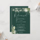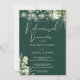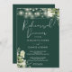 Elegante Saitenlichter, florale Vegetation, smaragdgrüne Probe Dinner Einladung mit Ihren Namen und Probe Dinner Details Set in schicken Text und Ihre Monogramm Initialen auf der Rückseite. Entwickelt von Thisisnotme©